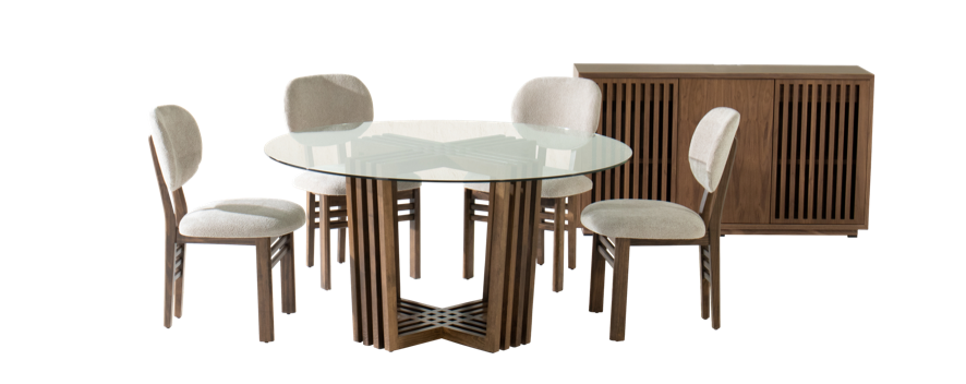 Uno de los materiales más destacados de esta temporada es el vidrio en diferentes aplicaciones y acabados, desde innovadores vidrios martillados y vidrios pigmentados, hasta el inesperado retorno del vidrio natural como elemento protagónico en los muebles.