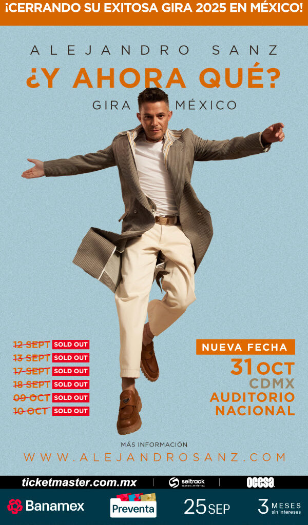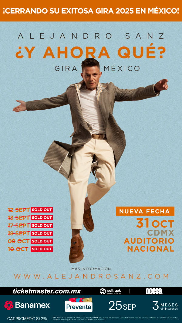 Este éxito, sumado al increíble arranque de gira en México —que sigue batiendo récords—, ha impulsado la siguiente fase del tour, que verá a Alejandro Sanz llevar su espectáculo a algunos de los estadios y arenas más importantes de Latinoamérica.