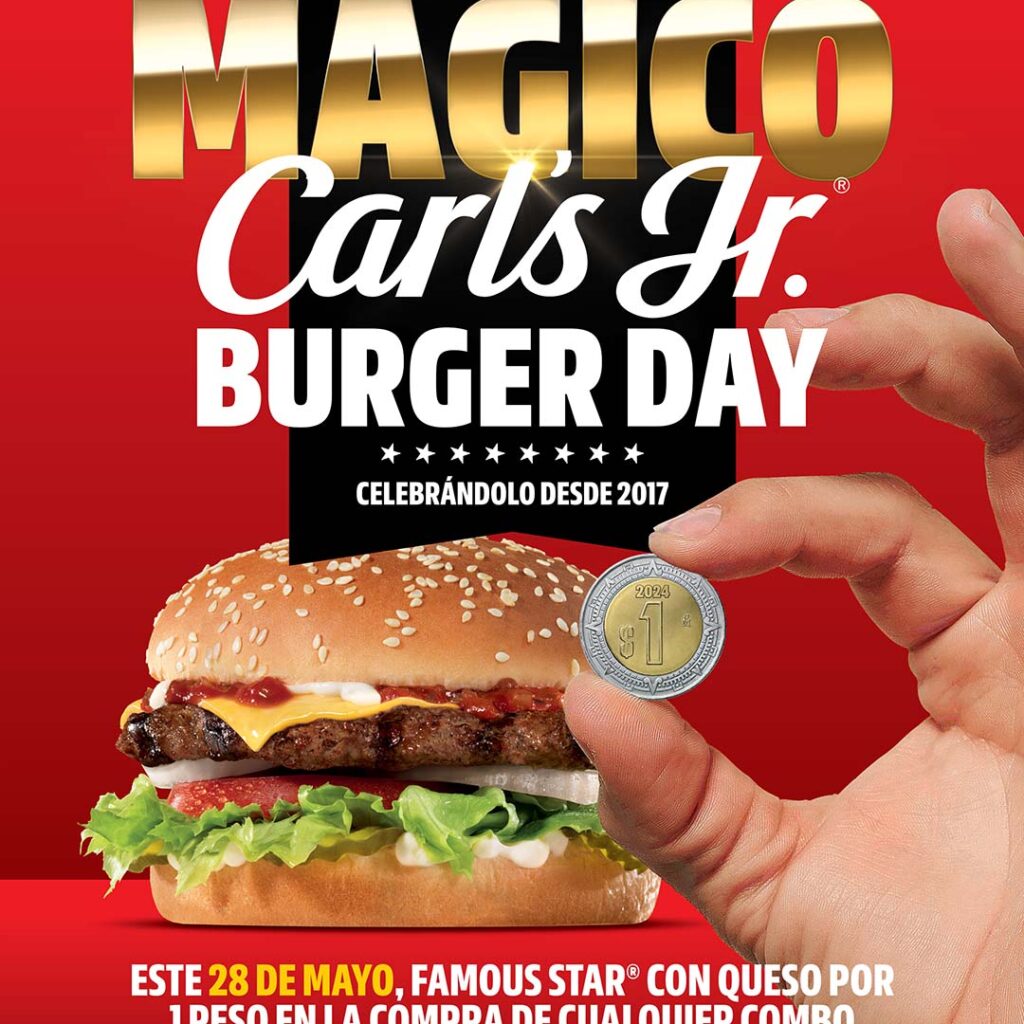 Cierra tus ojos un momento y piensa, ¿Qué puedo comprarme con un peso? Si dijiste “nada” o en este momento no encuentras la respuesta te la ponemos fácil, ¡una deliciosa hamburguesa! Y es que para Carl´s Jr., hay días que no pasan desapercibidos y al ser pionero en la celebración del “Burger Day” en México, viene con una de sus promociones más esperadas por todos al poner su emblemática “Famous Star”, a $1 peso. Leíste bien, ¡Sólo un pesito! Si compras antes otro combo.
