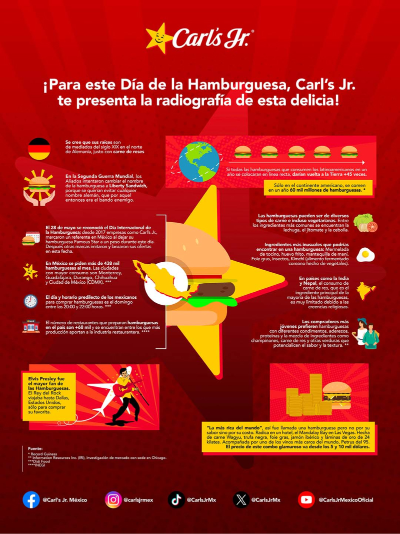 2024 es un año importante para la marca y hoy estamos muy contentos de haber sido los pioneros en establecer el 28 de mayo como el Día de la Hamburguesa, logrando que sea una fecha icónica de Carl´s Jr., y que ha hecho que nuestros invitados esperen con ansias el día para ir por su Famous Star a $1 peso. Estamos preparados para recibir a los fans de nuestras hamburguesas y celebrar como se debe el Burger Day”.