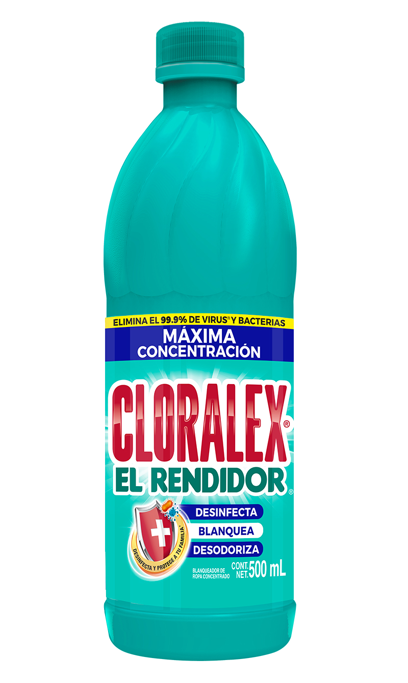 – Cloralex® El Rendidor® cuenta con una fórmula con máxima concentración de cloro que elimina el 99.9% de bacterias. ¡No olvides incluirlo dentro de tu rutina de desinfección en frutas y verduras!