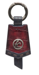 Llavero en piel genuina de cocodrilo. Diseño pintado a mano con tejidos artesanales y herrajes italianos.