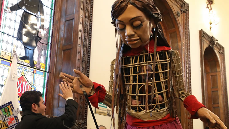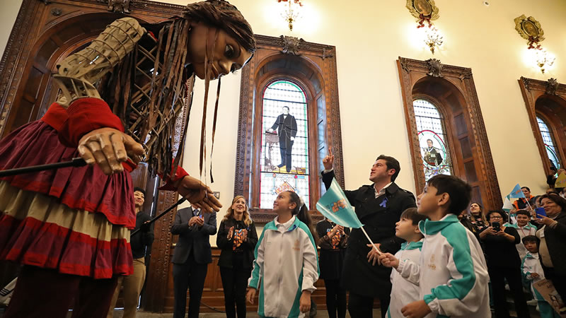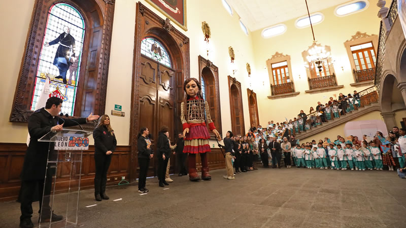 El Gobernador Samuel Alejandro García Sepúlveda dio la bienvenida a Nuevo León a la pequeña Amal, una marioneta de 3.5 metros de altura que representa a una niña siria de 10 años, la cual es el símbolo de los derechos humanos, especialmente de la infancia refugiada.