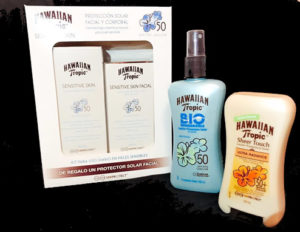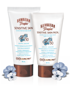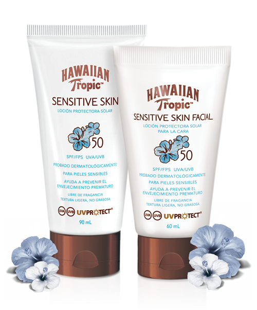 Ante la necesidad de protegerse de forma diaria los expertos en el cuidado de la piel de Hawaiian Tropic™ han creado Sensitive Skin, una loción suave e hipoalergénica con un FPS 50 que ofrece una alta protección frente a los rayos UVB y UVA, ideal para comenzar la rutina diaria del cuidado personal de toda la familia, puesto que es sumamente ligera, sin fragancia y no es grasosa, además de que es resistente al agua.