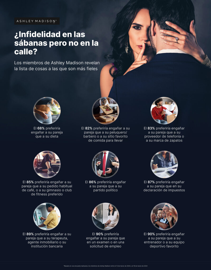 Las apariencias son importantes, el 82% de todos los miembros encuestados preferirían engañar a su pareja en lugar de a su peluquero/barbero. Quizás no sea sorprendente que las mujeres estén un poco menos inclinadas a dejar ir a su estilista favorito: el 87% afirma que es más probable que engañen a su pareja frente al 82% de los hombres. Sin embargo, la cosa no termina ahí. En general, los miembros indican un mayor nivel de fidelidad a sus proveedores de telefonía, su lugar favorito de comida para llevar, su gimnasio preferido y más.