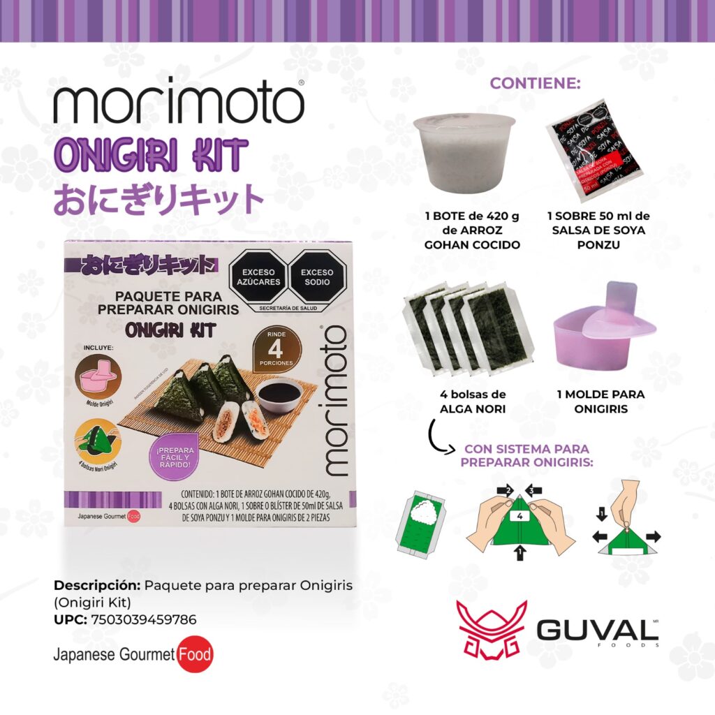 En México la llegada de este platillo se hizo más popular hace algún tiempo y Guval Foods a través de su reconocida marca Morimoto, ha creado el Onigiri Kit, el cual trae todo lo necesario para que puedas preparar Onigiris en casa de forma fácil, rápida y saludable.