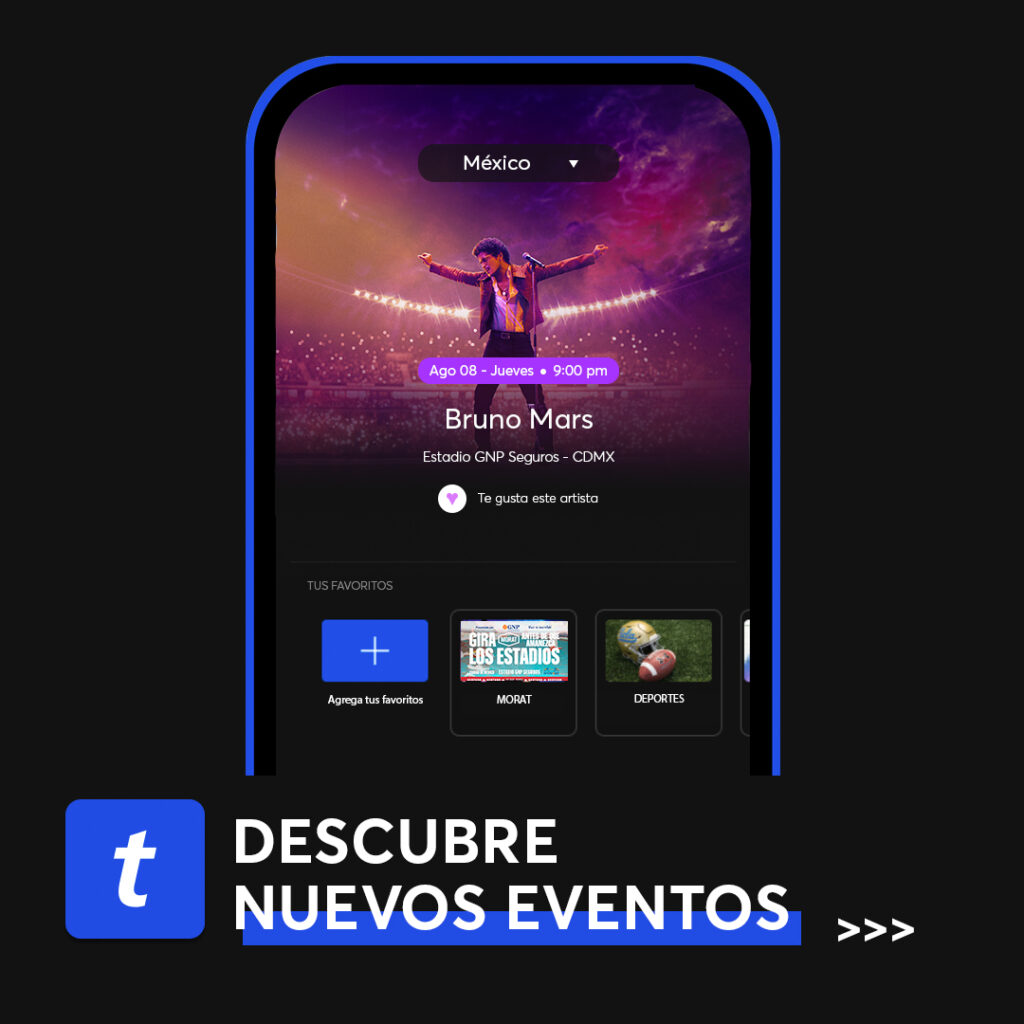 ● Alertas y recomendaciones personalizadas: los fans recibirán recomendaciones basadas en sus intereses e historial de compra de boletos, manteniéndolos informados sobre los próximos eventos de sus artistas y deportistas favoritos.